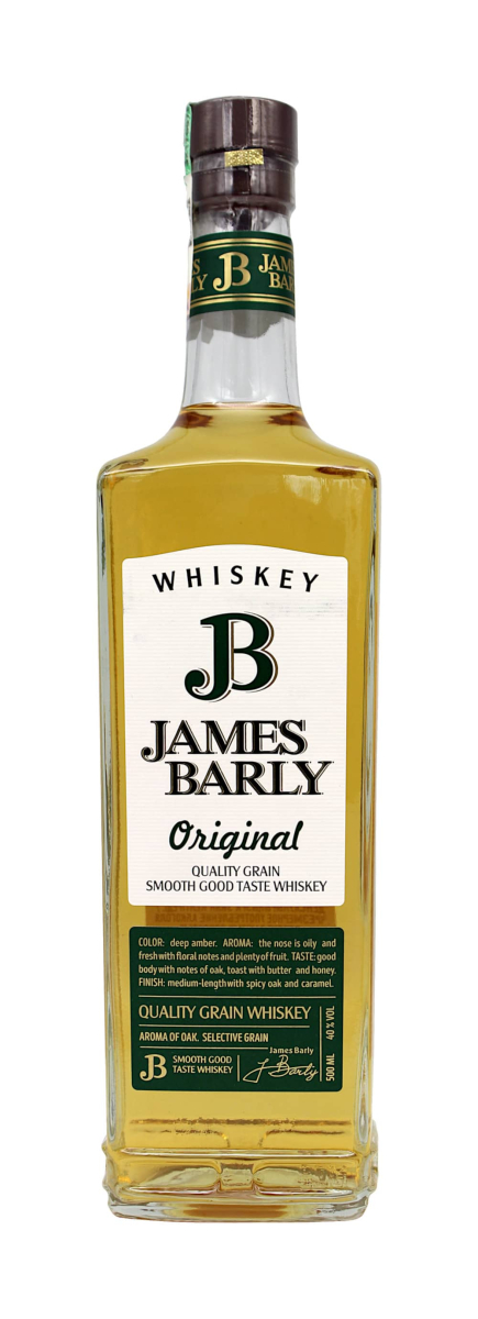 Виски James Barly Original – классический купажированный виски светло-янтарного цвета с ярким характером и насыщенным, многогранным вкусом. Послевкусие постепенное, согревающее, чуть дымное. Подавать в чистом виде или со льдом после еды в качестве дижестива. Янтарный цвет. Фруктово-цветочные ноты, штрихи свежих специй и древесины. Пряный аромат, с нотками дубовой выдержки и сухофруктов. Гастрономические сочетания - в чистом виде, со льдом, в качестве дижестива.